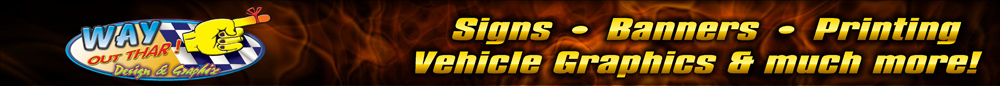 Here at WAY OUT THAR!!! we provide a wide range of signage solutions that will be sure to fulfill your needs or requirements. We specialize in a large variety of printing services. If your looking to make a sign that is both creative and motivating then you came to the right place. We are your One-Stop Shop for all your printing needs.